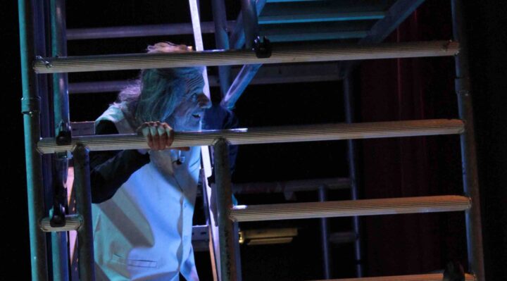Trascendi e sali arriva infatti dopo Urge e Nessi spettacoli che hanno inciso profondamente Bergonzoni, in tutti i sensi, aprendogli artisticamente e socialmente strade sempre più intricate e necessarie. Trascendi e sali, piuttosto che in avanti, potrebbe essere artisticamente un salto di lato a dimostrazione che a volte per una progressione non è sempre necessario seguire una linea retta. Dove la carta diventa forbice per trasformarsi in sasso, dove il comico si interroga per confessare e chiedere e tornare a indicare quello che evidentemente lui vede prima degli altri. Forse dall’alto delle sue scenografie o nella regia condivisa con Riccardo Rodolfi. Forse. Sicuramente. Sicuramente forse.