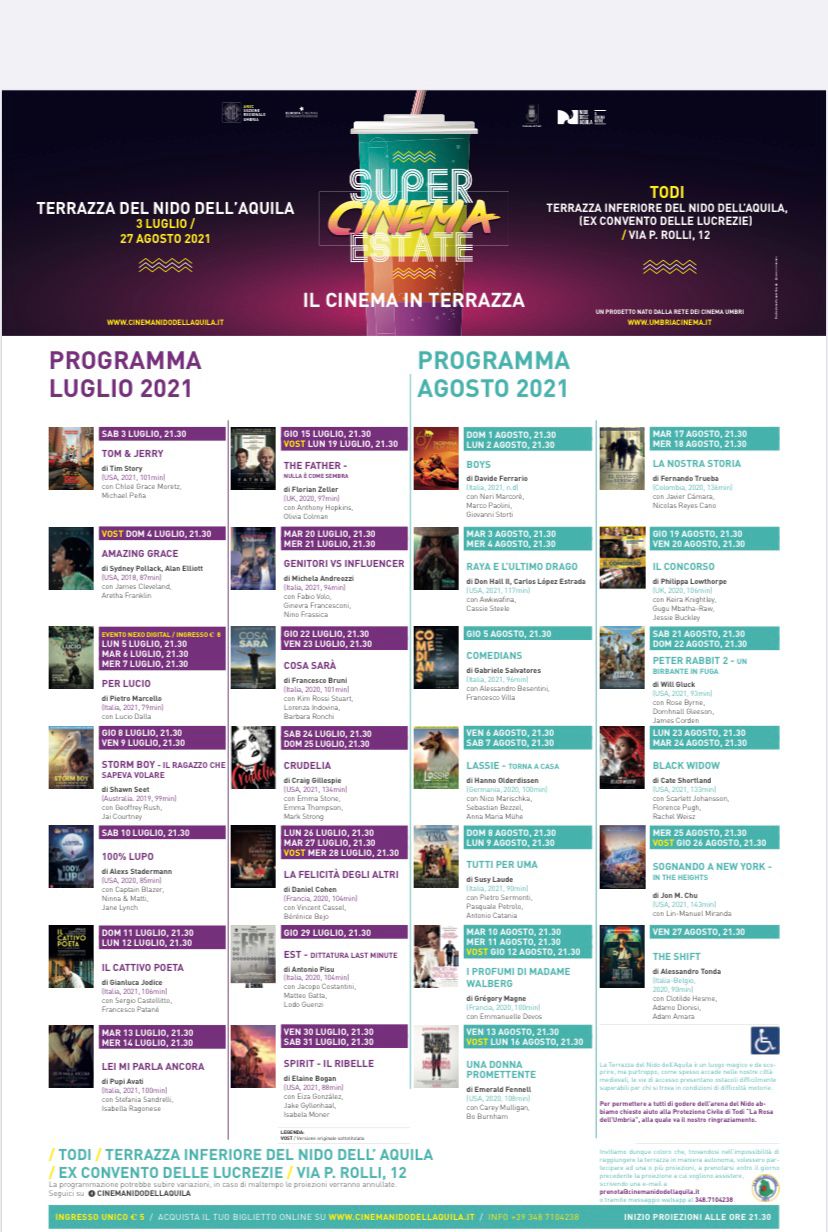 “Super Cinema Estate” è un progetto di rete promosso da ANEC (Associazione Nazionale Esercenti Cinema) sezione Umbria ed è frutto dell’intesa fra gli esercenti umbri che, con fatica, dedizione, ansia ma anche tanta speranza danno un segno alla nostra comunità in questo momento ancora difficile.