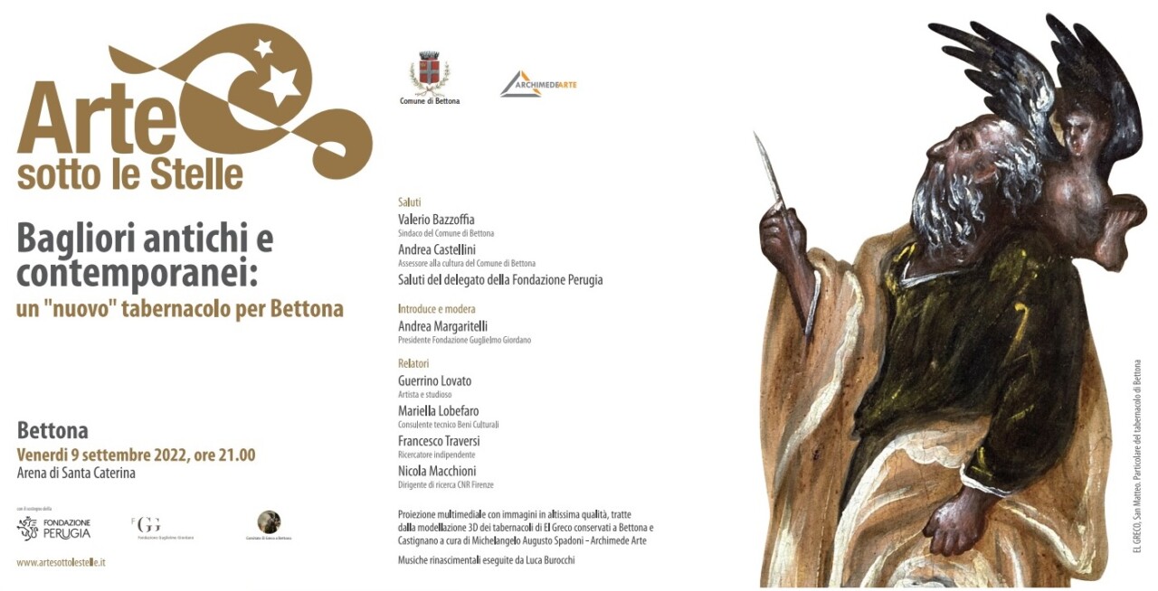 L’evento rappresenta una tappa significativa nell’ambito delle ricerche storico-culturali sui tabernacoli lignei dipinti in oro presenti in diverse zone del centro Italia riconducibili ad una bottega di pittori veneto-cretesi facente capo a El Greco, tra cui quello di Bettona, e vede il sostegno di Fondazione Perugia, Fondazione Guglielmo Giordano e Comitato El Greco a Bettona.