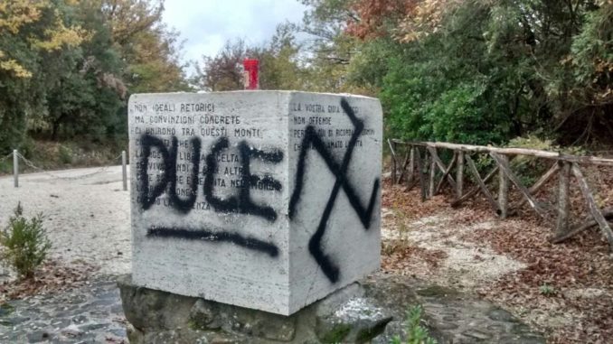 Cippo Partigiani Bettona, vergognosa aggressione, scritte fasciste