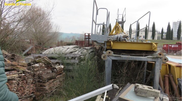 Nel dettaglio, i militari del Nucleo Mobile della Tenenza di Todi, nel corso dell’ordinaria attività di controllo economico del territorio, hanno individuato, nell’area di insediamento produttivo, un terreno, intestato ad una società operante nel settore delle costruzioni, su cui erano accumulati scarti derivanti da demolizioni, oli disarmanti e resine, pannelli in poliuretano, residui di guaina bituminosa, lana di roccia, polistirolo espanso, oltre a due muletti fuori uso ed apparecchiature elettriche varie.