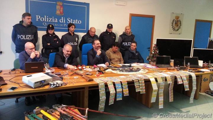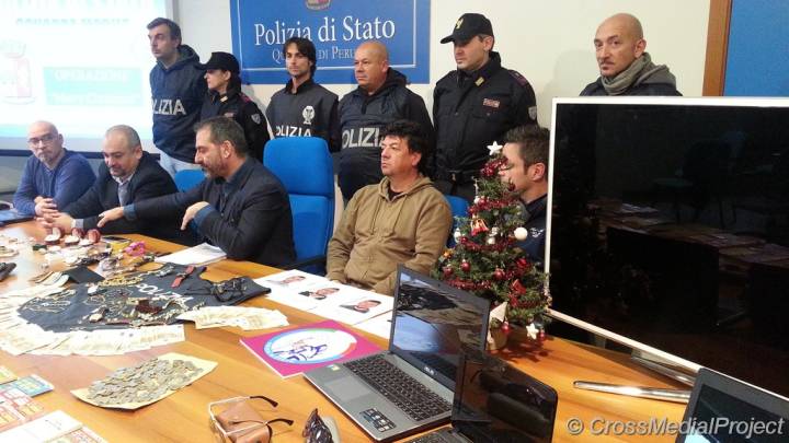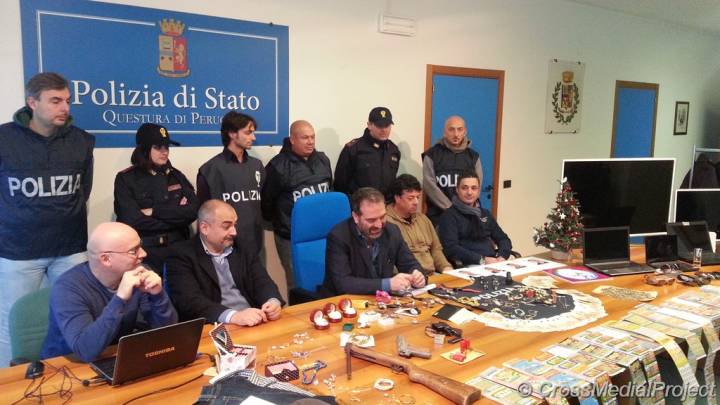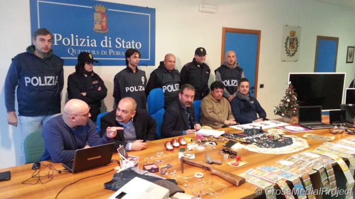 PERUGIA – Quattro albanesi sono stati fermati dalla squadra mobile di Perugia nell’ambito dell’operazione “Merry Christmas”. Sono stati definiti “stakanovisti dei furti”. Sequestrata refurtiva per un valore di circa 150 mila euro. Una pistola insieme a tre auto (Audi, Bmw e Alfa Romeo), stereo, computer, televisione, profumi, occhiali, orologi, sciarpe, costose bottiglie di cognac tra gli oggetti sequestrati. Numerosi tagliandi gratta e vinci risultati rubati un un bar di Recanati sono stati rinvenuti in un paio di appartamenti tra Ponte San Giovanni e Resina, alla periferia del capoluogo umbro.