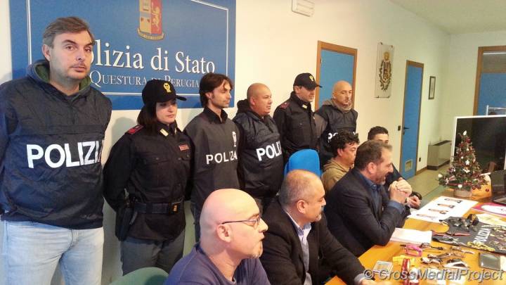 Un 46/enne albanese da tempo dimorante in Umbria – secondo la ricostruzione degli investigatori, coordinati dal vicequestore Marco Chiacchiera, aveva reclutato dalla Campania tre connazionali di 46, 32 e 33 anni. Questi – e’ stato spiegato stamani durante una conferenza stampa – hanno messo a segno “60 furti in tre giorni”. Le indagini della sezione contro la criminalita’ diffusa e dell’antirapine ha consentito di rintracciare i presunti responsabili dei furti.