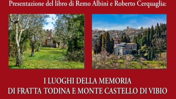 Sabato 7 Agosto 2021 – ore 21,00 nel centro storico di Fratta Todina, sarà presentato il libro dei “Luoghi della memoria di Fratta Todina e Monte Castello di Vibio” realizzato da Roberto Cerquaglia e Remo Albini con la prefazione di Filippo Orsini (direttore dell’archivio storico del comune di Todi). Il volume è patrocinato dalla Provincia di Perugia e dai comuni di Fratta Todina e Monte Castello di Vibio ed è stato realizzato in collaborazione con l’Università della Terza Età di Monte Castello di Vibio, la Pro loco di Fratta Todina ed altre associazioni del territorio. Scopo del libro è quello di censire luoghi di culto e non, capaci di risvegliare in ognuno di noi ricordi ed emozioni sopite, sempre pronte a risvegliarsi e a suscitare ancora emozioni attraverso le immagini, che grazie agli scatti di Remo Albini restano immortalati per sempre. Così, tra edicole votive, antiche abbazie più o meno note, pozzi, fontanili, abbeveratoi e lavatoi posti nelle campagne, Roberto Cerquaglia ci prende per mano, accompagnandoci in un viaggio ideale a spasso per il tempo. Si replica Venerdì 13 Agosto a Monte Castello di Vibio, Piazza Vittorio Emanuele II quando a presentare il libro sarà il giornalista sportivo Riccardo Cucchi. Ad entrambe gli appuntamenti interverranno anche i sindaci dei due Comuni coinvolti: Gianluca Coata (Fratta Todina) e Daniela Brugnossi (Monte Castello di Vibio.