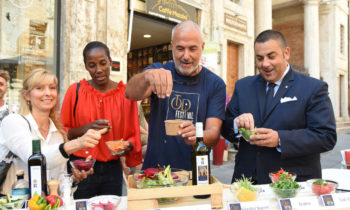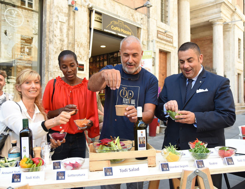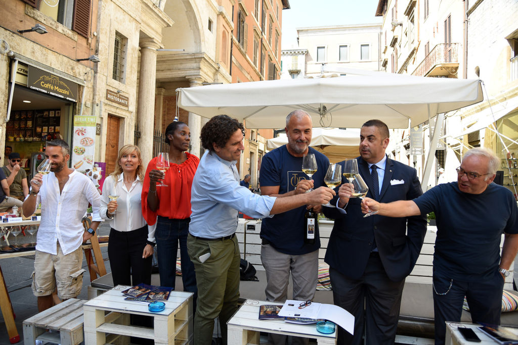 Al termine della presentazione si è tenuta la degustazione del Grechetto di Todi Roccafiore Limited Editionbottiglia ufficiale di Todi Festival 2018presentata per il terzo anno consecutivo grazie alla partnership con Cantina Roccafiore e come nei due anni precedenti con un etichetta d’autore, consistente nel manifesto ufficiale del Festival che quest’anno è frutto dell’arte del maestro Bruno Ceccobelli in collaborazione con i figli Auro e Celso.