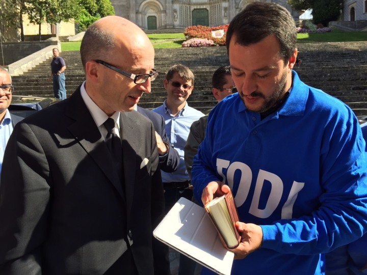 “Ho visto che hanno imbrattato la sede della Lega con una svastica – ha detto Salvini-. Ma chi pensa che tornino i nazisti nel 2015 è un poveretto. Non torna il fascismo e non torna il comunismo, anche se in Umbria in parte lo vivete sulla vostra pelle e sui posti di lavoro”.