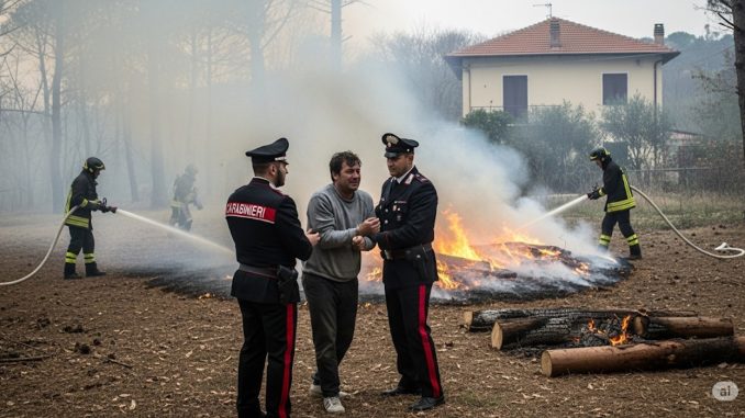 Piromane arrestato a Todi – I Carabinieri della Sezione Radiomobile di Todi hanno tratto in arresto un uomo di 45 anni, di origine cilena e con precedenti di polizia, per incendio boschivo doloso. L’uomo è stato sorpreso lungo la Strada Provinciale 380, in località Ponte Martino, mentre appiccava un rogo utilizzando accendini e fogli di carta preparati per innescare le fiamme.