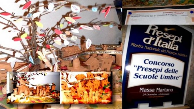 Rappresentare la Natività di Gesù Cristo per mano dei bambini. Questo è l’obiettivo dell’Associazione Presepi d’Italia che anche per il 2014, in collaborazione con la Pro Loco e l’Istituto Comprensivo di Massa Martana, ha promosso la IX Edizione del concorso “I Presepi delle Scuole Umbre”. I bimbi delle scuole partecipanti del territorio umbro hanno così dato vita alle loro splendide creazioni realizzate in classe: presepi di dimensioni non superiori a cm 80 x 60 x 70 (larghezza x profondità x altezza) e costruiti in forma stabile su una base di legno. Ad aggiudicarsi il primo premio tra le scuole Primaria sono state le classi Quarta e Quinta del Plesso “G. Mameli”- III Circolo Didattico di Foligno. In sole due lezioni – sotto la supervisione delle insegnanti M.T. Cristina Pazzaglia, Anna Maria Patassa e Serenella Baldini, con il sostegno del Dirigente Scolastico Walter Fusi e con la guida esperta del signor Enrico Alimenti (genitore di un’alunna che da anni collabora gratuitamente) – gli alunni hanno realizzato personaggi ed oggetti in terracotta per l’allestimento di un presepe tradizionale, completo in ogni dettaglio. Il presepe vincitore – insieme a tutte le altre migliori realizzazioni delle scuole partecipanti – sarà visibile in esposizione fino al 6 gennaio nell’ambito della mostra nazionale “Presepi d’Italia” presso il centro storico di Massa Martana. Per maggiori dettagli è possibile visitare il sito www.presepiditalia.it.