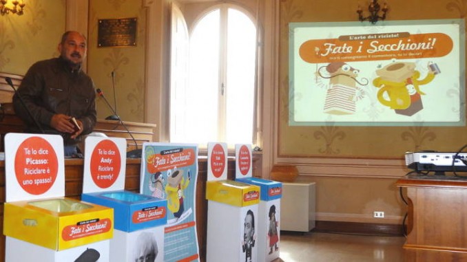 La proposta didattica Per l’anno scolastico 2014/2015 il progetto didattico, per festeggiare i trenta anni di attività nelle scuole del gruppo Gesenu, consiste in un restyling dei primi progetti promossi che si intitolavano “Riciclare e colorare” e “Colora la campana”. Anche in questo caso l’intento sarà quello di stimolare in modo divertente e creativo l’apprendimento degli studenti, puntando l’attenzione sulla qualità dei materiali raccolti e portando all’interno delle classi elementi strutturali, in questo caso dei contenitori, capaci di facilitare l’adozione dei corretti metodi di differenziazione. “Fate i secchioni! Noi ti consegniamo il contenitore, tu lo decori” è infatti il titolo della proposta didattica di quest’anno che prevede, appunto, la consegna, ad ogni classe che partecipa al progetto, di due contenitori in cartone, uno per la carta e uno per la plastica, che gli studenti sono chiamati a decorare e a personalizzare come vogliono.