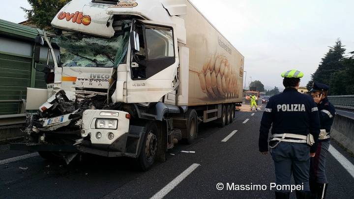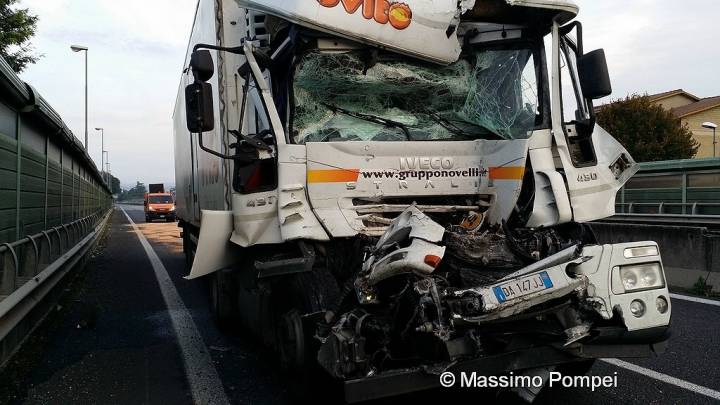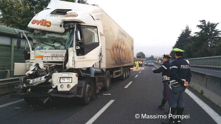 Terribile tamponamento tra camion sulla E45, tra Pontenuovo e Deruta, un ferito