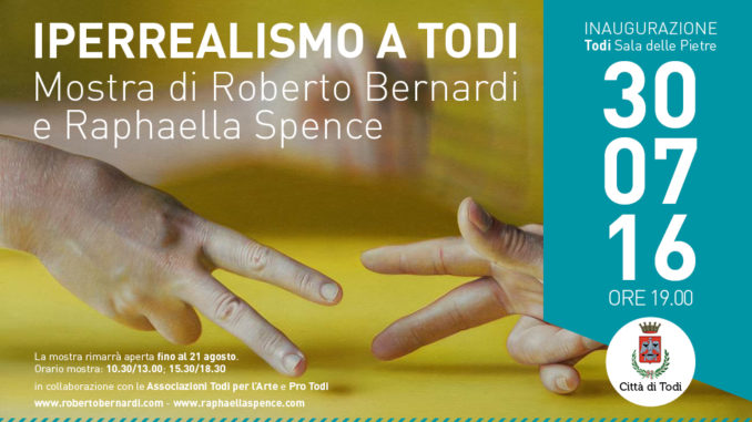 Todi: in mostra l’Iperrealismo di Roberto Bernardi e Raphaella Spence. Sarà la rinnovata Sala delle Pietre di Todi, recentemente riaperta al pubblico dopo i lavori di riqualificazione funzionale, ad ospitare la mostra “Iperrealismo a Todi” della coppia di artisti Roberto Bernardi e Raphaella Spence.