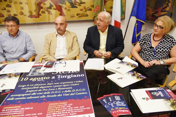 Le iniziative in programma per Calici di Stelle – 10 agosto a Torgiano sono state presentate stamani a Perugia nella sala fiume di palazzo Donini nel corso della conferenza stampa per la 18esima edizione della manifestazione organizzata dalla Strada dei Vini del Cantico in collaborazione con il Comune di Torgiano.