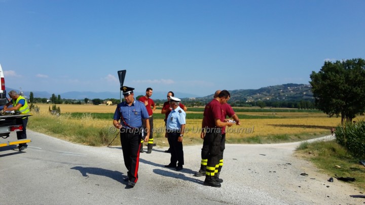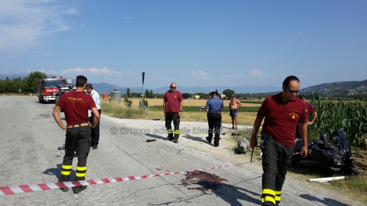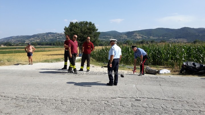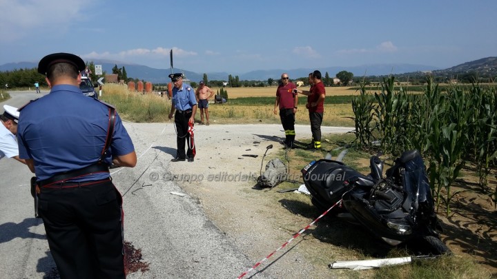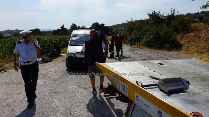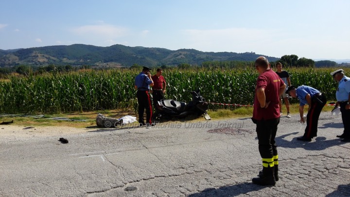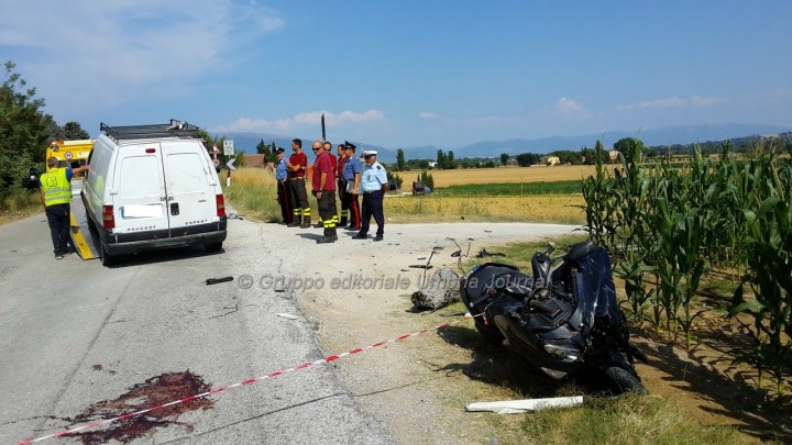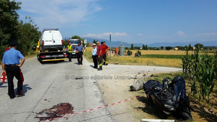 Scontro a Torgiano tra un furgone e uno scooter. Un morto è tre feriti, tutti residenti a Bastia Umbra. A perdere la vita un centauro, 38enne di nazionalità romena. L’incidente si è verificato nel primo pomeriggio di venerdì 17 luglio, nel comune di Torgiano, lungo la strada che porta ad Assisi. Il fatto è avvenuto intorno alle 14.40 . Sul posto i Carabinieri per i rilievi, i vigili del fuoco e il personale del 118. I medici hanno tentato di rianimare l’uomo ma non c’è stato nulla da fare, troppo gravi le ferite riportate nell’impatto.
