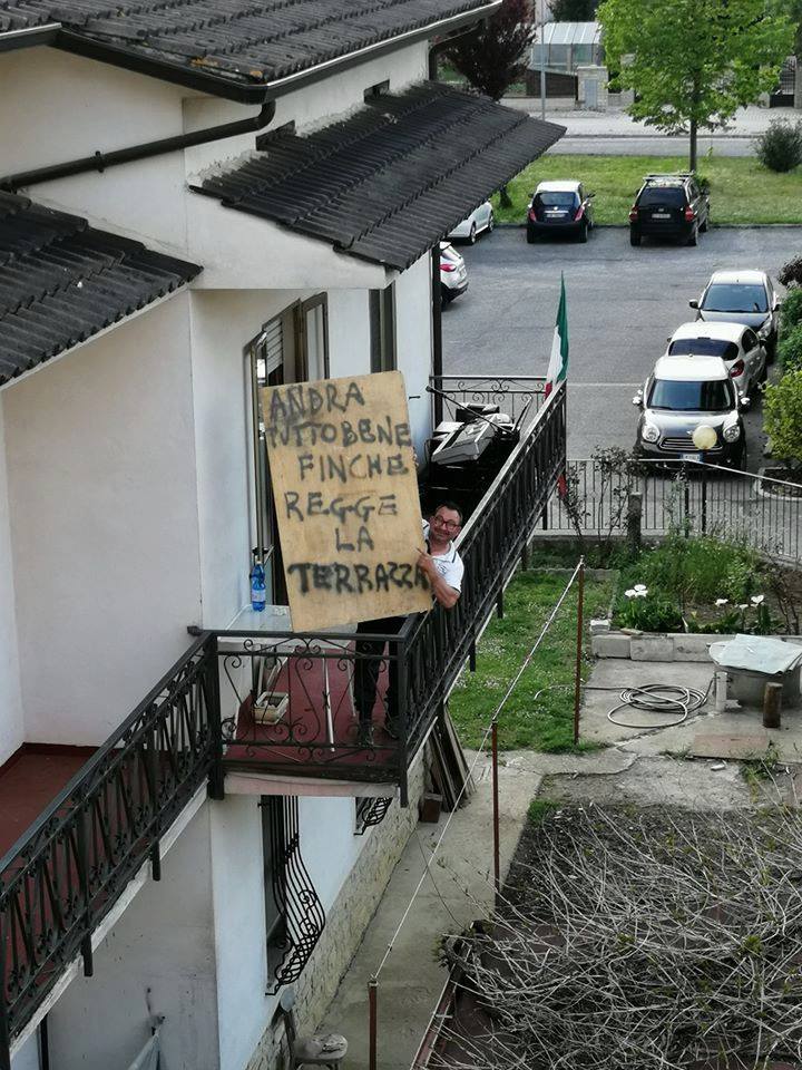 “Andrà tutto bene finché regge la terrazza” è stato uno dei messaggi di Federico scritto su un grosso cartellone mostrato a tutti dal balcone nei giorni precedenti al suo compleanno.