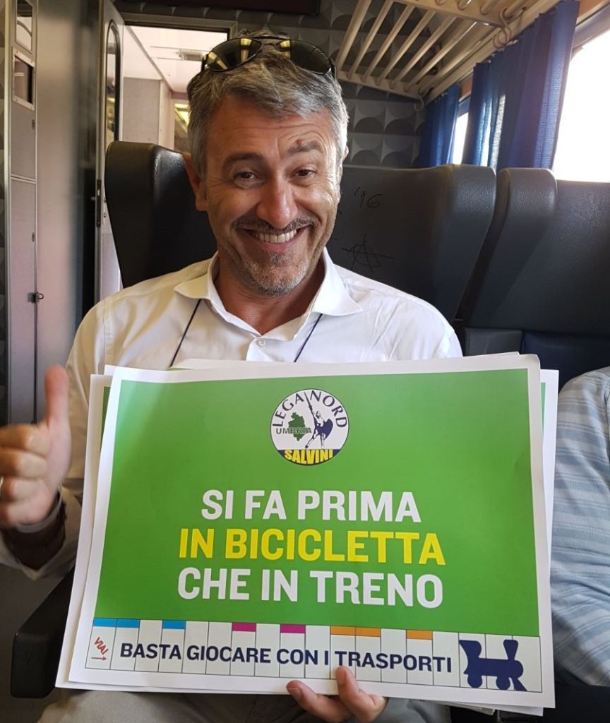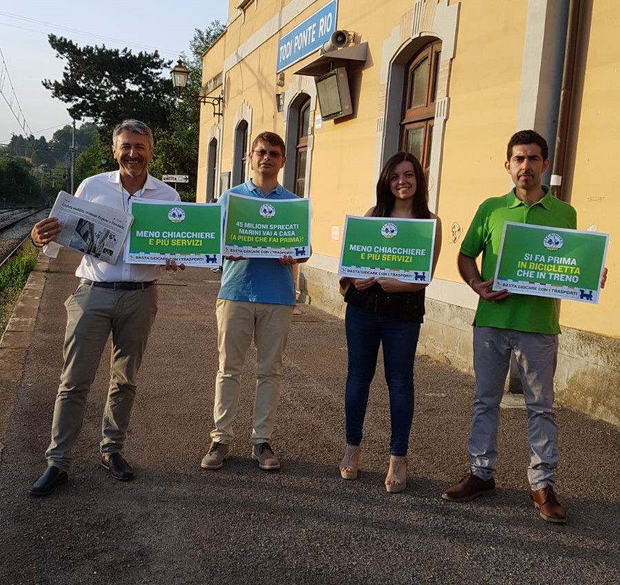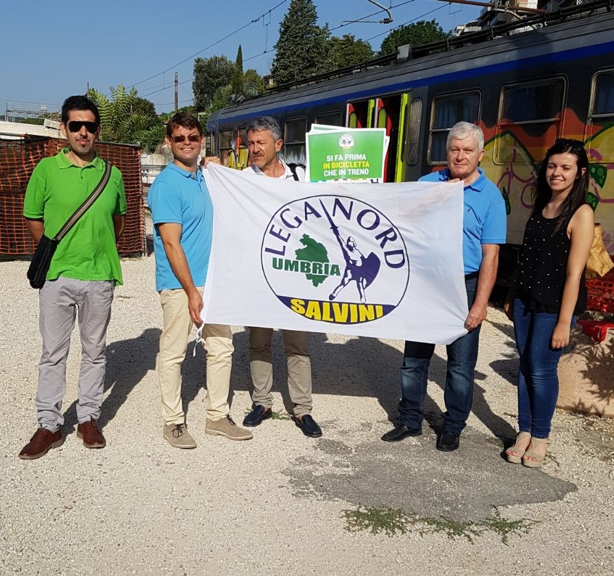 La situazione rasenta il ridicolo. Dalla scorsa settimana i treni, in alcuni tratti, viaggiano addirittura a 10 km all’ora con la conseguenza che siamo stati superati persino dalle biciclette. La Marini e il Pd continuano a negare le proprie responsabilità, nonostante la Corte dei Conti chieda conto di 45 milioni di euro di sprechi. Il quadro desolante è sotto gli occhi di tutti: stazioni fatiscenti, treni oggetto di atti vandalici e cronicamente in ritardo, personale costretto a lavorare in condizioni di stress e incertezza”. Per Nando Piazzoli, responsabile della Lega Nord di Marsciano e Francesca Peppucci, Consigliere comunale della Lega a Todi, presenti all’iniziativa: ” la linea ferroviaria Terni-Perugia rappresenta un collegamento fondamentale per la Media Valle del Tevere, sia come mezzo di trasporto per studenti e lavoratori che come opportunità di valorizzazione del territorio a livello turistico.